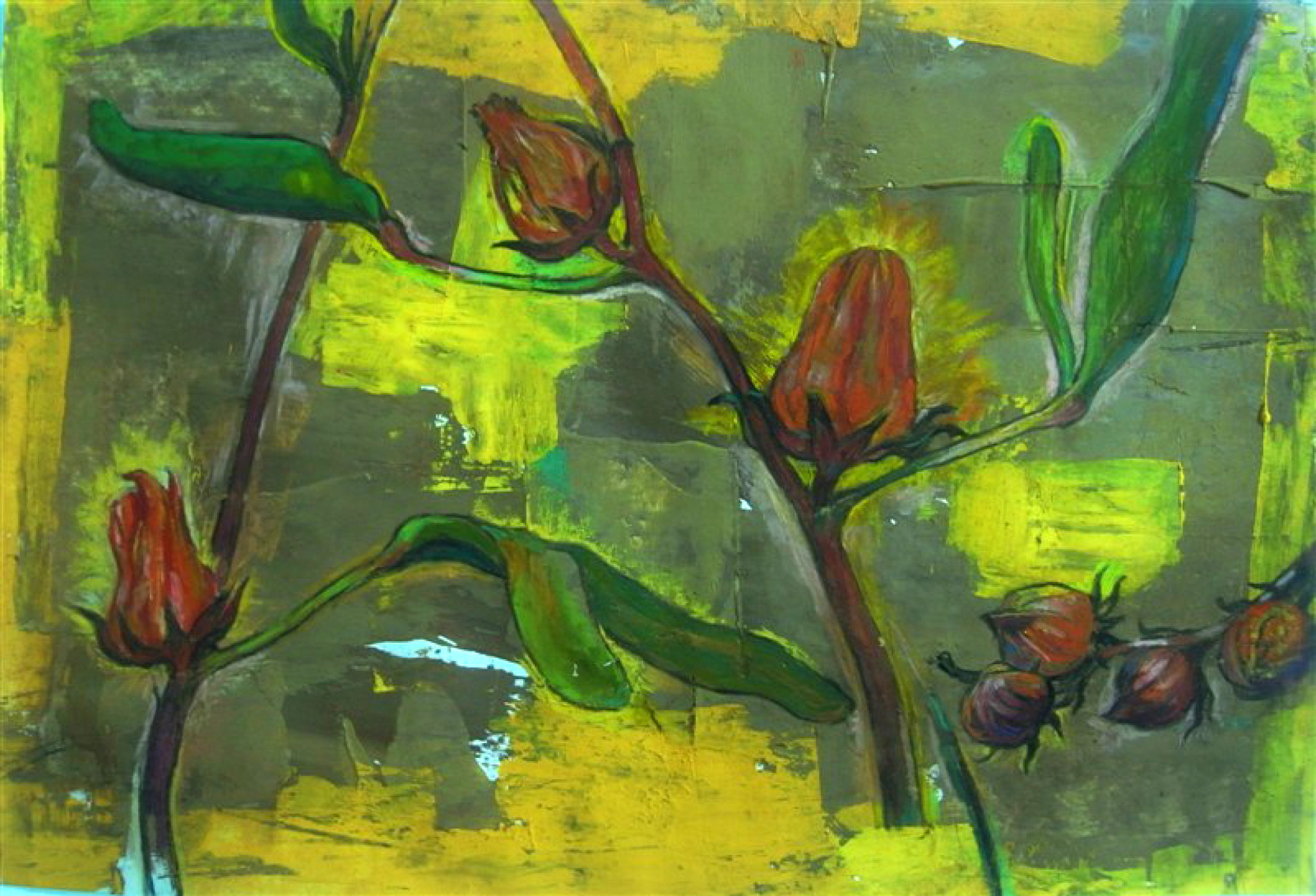 這些豐富莫名的感動,一到寂靜的深夜,全部化成一朵朵火紅濃烈發紫發黑的[洛神],祂的美帶著特有的土味,也是神祕的。為這個展覽記下開始蔓延對祂思念的滋味。